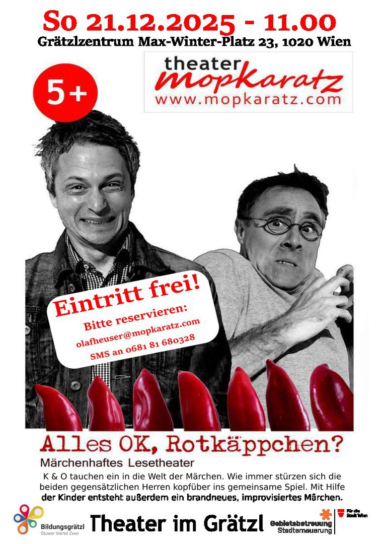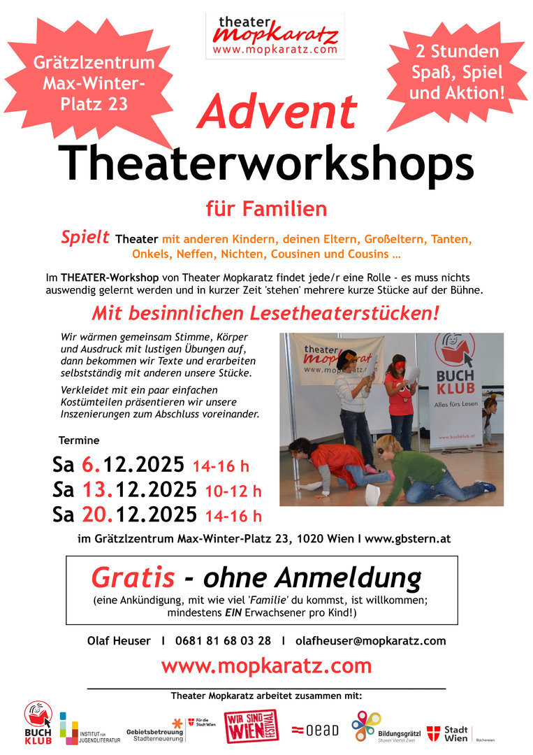 Weitere Aktionen sind in Planung. Falls auch Sie Interesse haben, dass Theater Mopkaratz zu Ihnen ins Bildungsgrätzl kommt, einfach eine e-Mail schreiben oder anrufen: